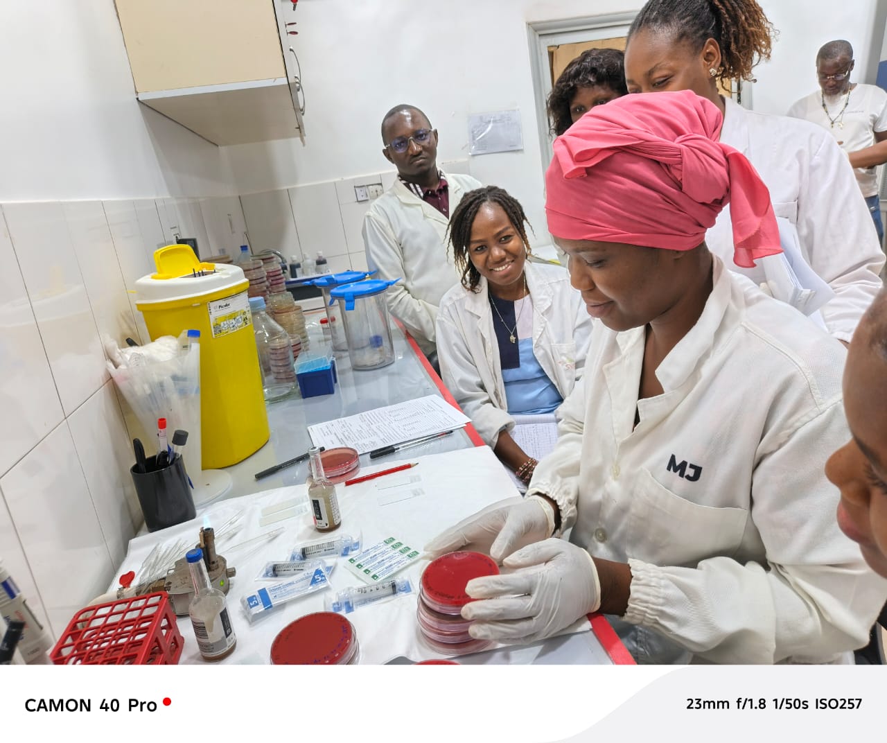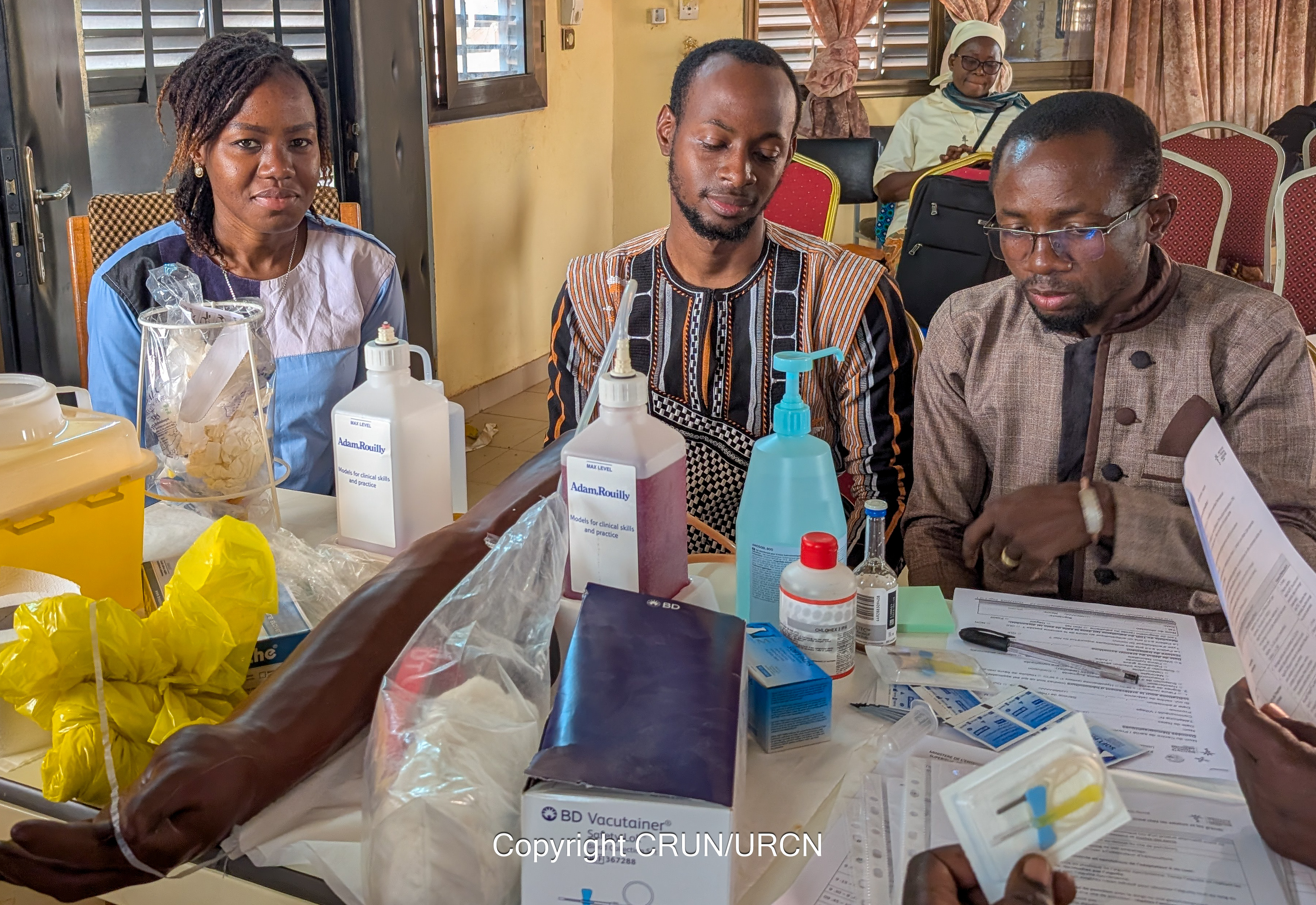 The training sessions combined theorical sessions (PowerPoint presentations of the context, the introduction of clinical bacteriology, the extend of AMR, and containment measures), infection prevention and control (healthcare surface cleaning and decontamination, and hand hygiene) and practical sessions (hand hygiene, blood culture sample collection and laboratory work up of blood cultures).